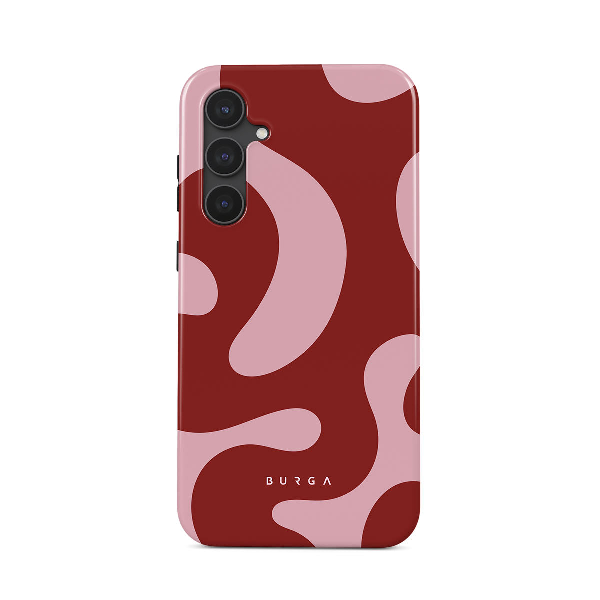 Główne elementy projektu: fale, abstrakcyjny wzór, ciemnoczerwone zawirowania, różowe zawirowania.