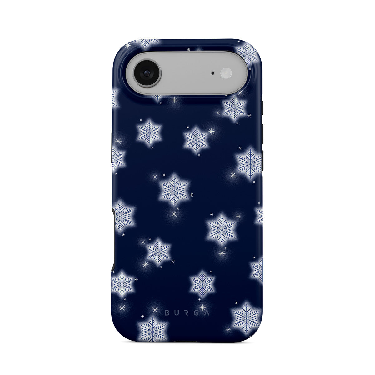 Główne elementy projektu: białe płatki śniegu, granatowe tło, zimowy wzór płatków śniegu, geometryczne płatki śniegu, klasyczny zimowy design