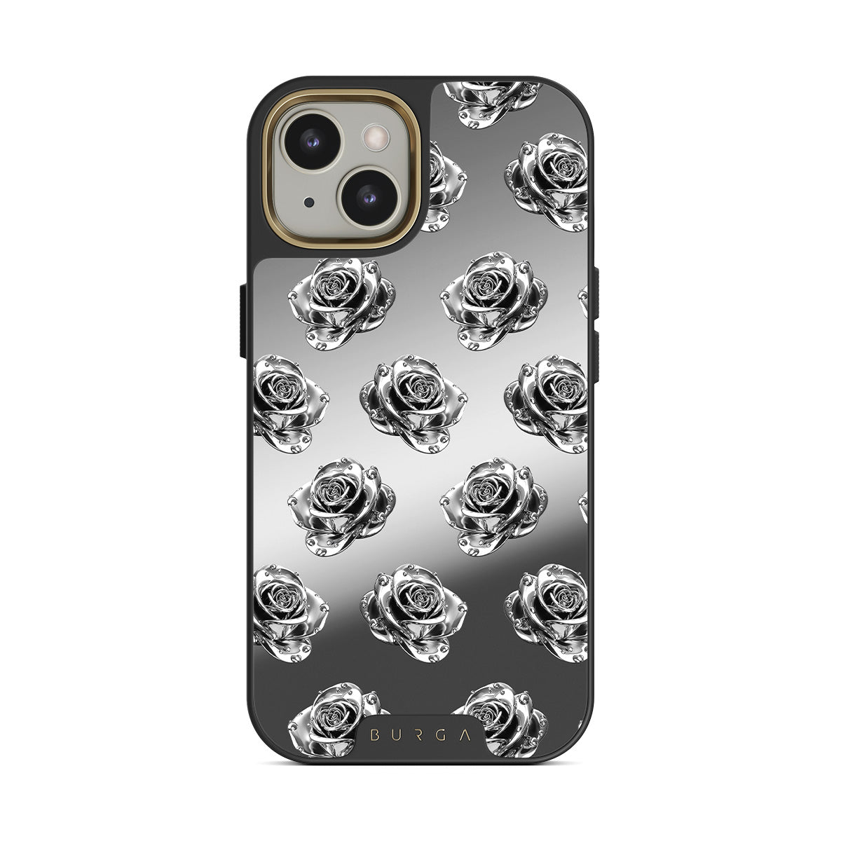Główne elementy projektu: róże, srebro, metal, kwiaty, lustro