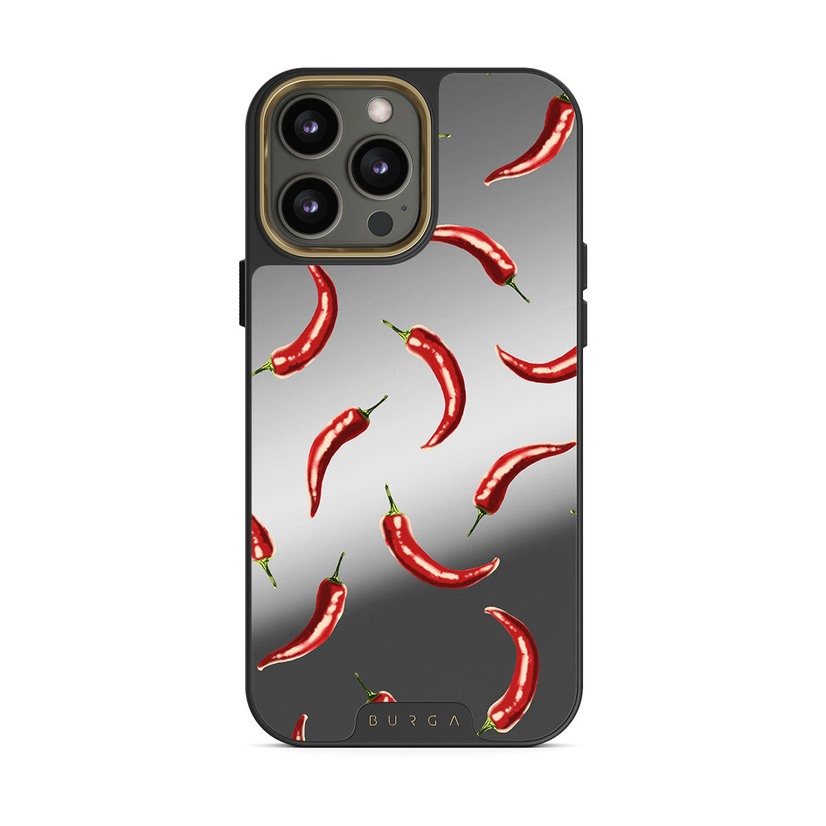 Główne elementy projektu: papryczki chili, pikantne jedzenie, czerwone papryki, lustro