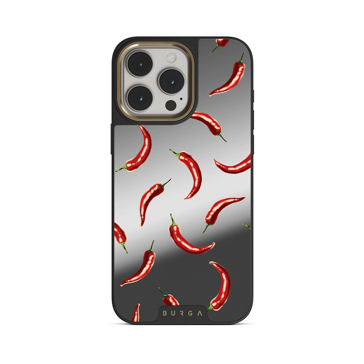 Główne elementy projektu: papryczki chili, pikantne jedzenie, czerwone papryki, lustro