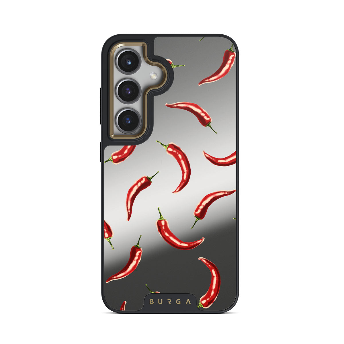 Główne elementy projektu: papryczki chili, pikantne jedzenie, czerwone papryki, lustro
