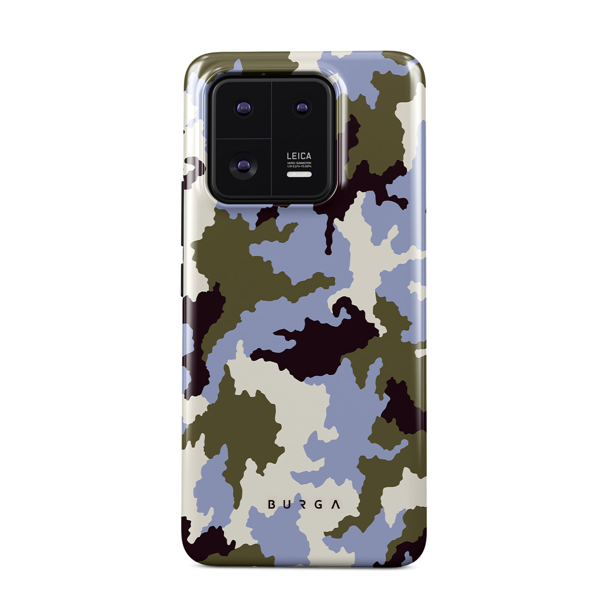 Główne elementy projektu: motyw maskujący, kolor zielony, kolor niebieski, motyw wojskowy, abstrakcyjne kształty