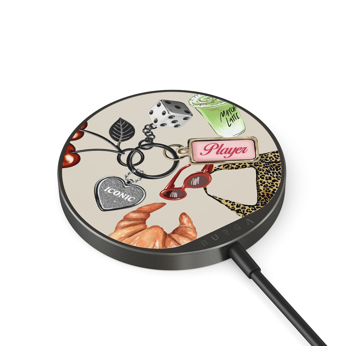 Zintegrowany przewód o długości 1,5 m ułatwia ładowanie urządzenia w dowolnym miejscu – w biurze, na kanapie lub w poczekalni na lotnisku. Ponadto szklana tylna część BURGA z ponad 500 wzorami do wyboru sprawia, że Twoja ładowarka wygląda równie dobrze jak etui.