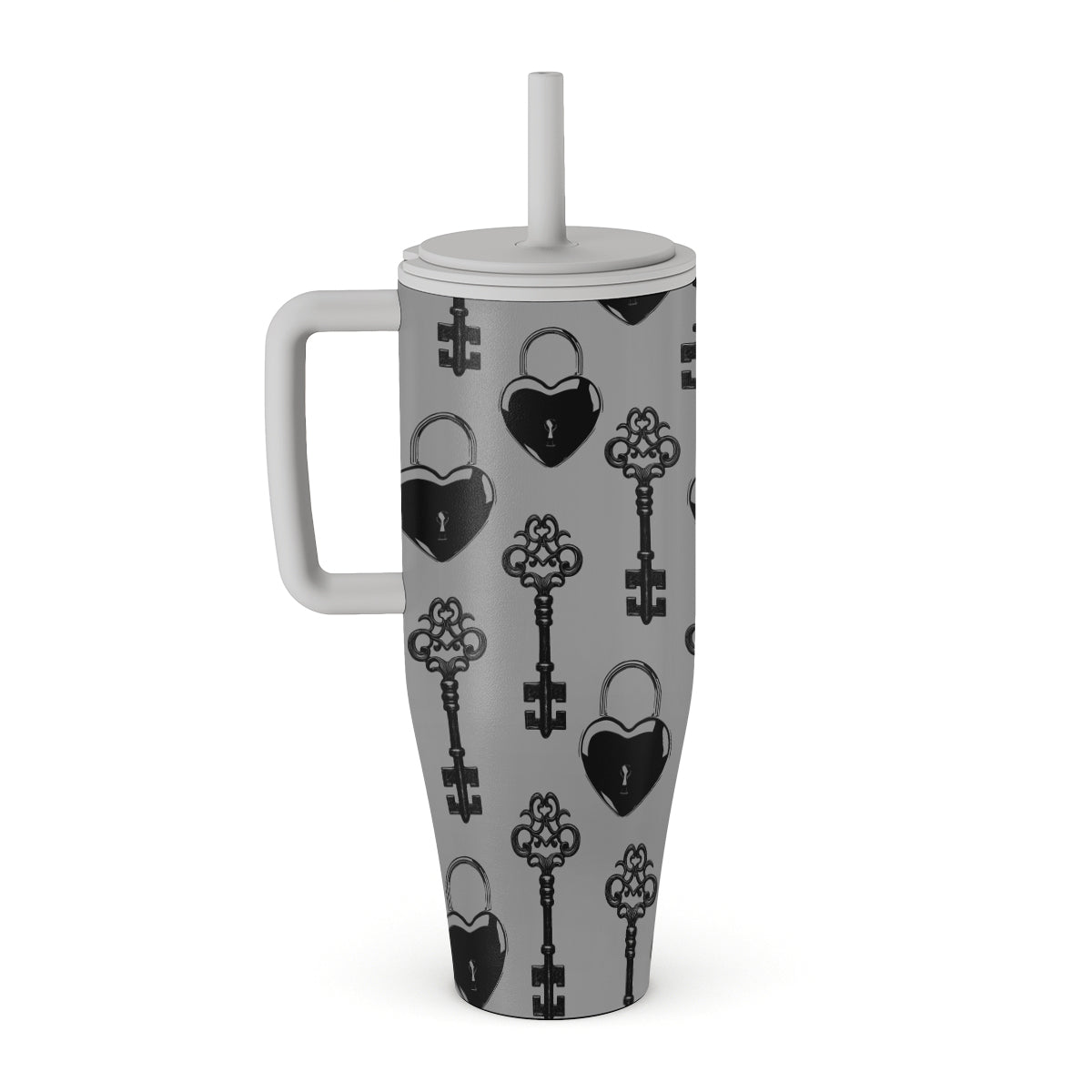 Materiały: stal nierdzewna 304L (korpus i słomka), tworzywo PP bez BPA + silikon (pokrywka), PP (uchwyt).