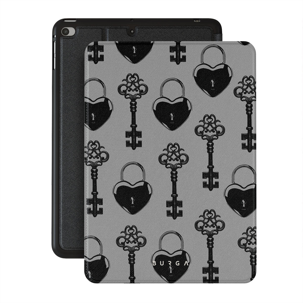 Główne elementy projektu: ozdobne zamki, klucze vintage, czarne detale.