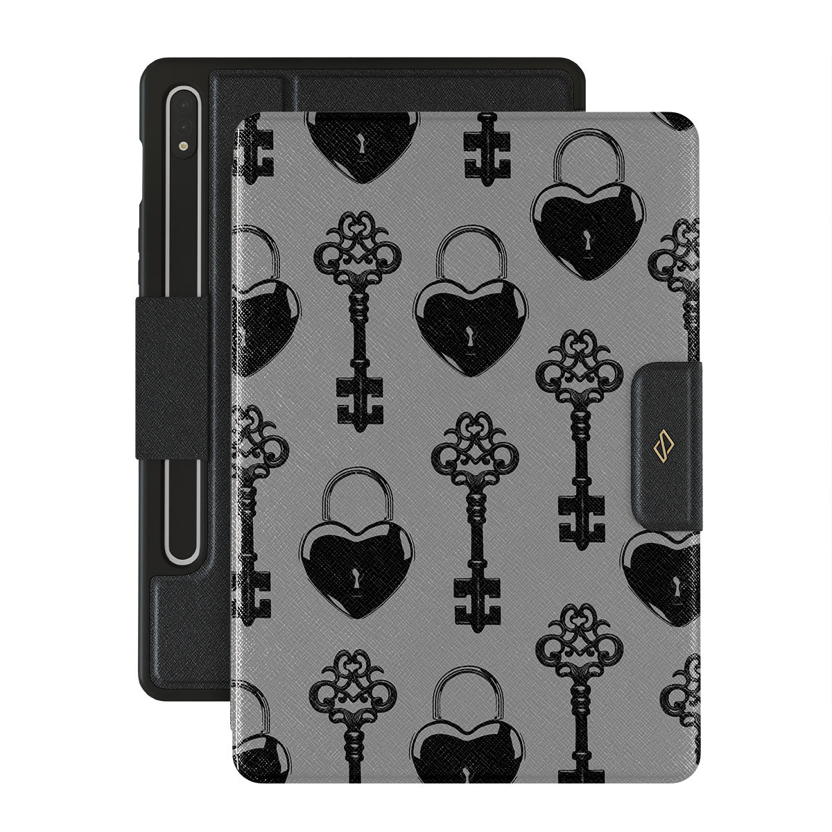 Uwaga: Wzór jest nadrukowany – nie ma faktury ani tłoczenia.Główne elementy projektu: ozdobne zamki, klucze vintage, czarne detale.