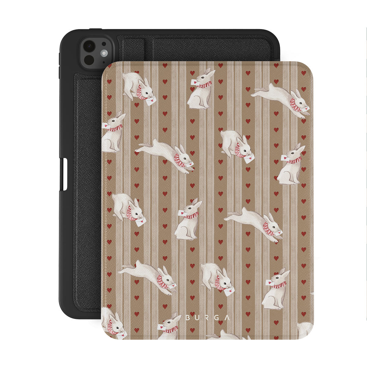 Główne elementy projektu: białe króliki, serca, miłość, listy, vintage paski