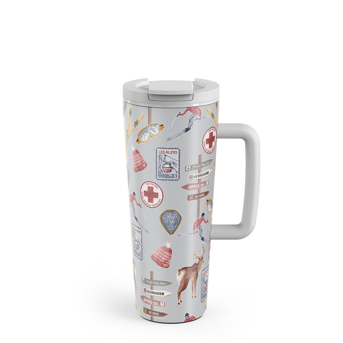 Główne elementy projektu: plakat vintage narciarski, retro ośrodek narciarski, ilustracja jelenia, design wyciągu narciarskiego, alpejski wzór, sporty zimowe, klasyczny styl chatki narciarskiej, grafiki ośrodka górskiego