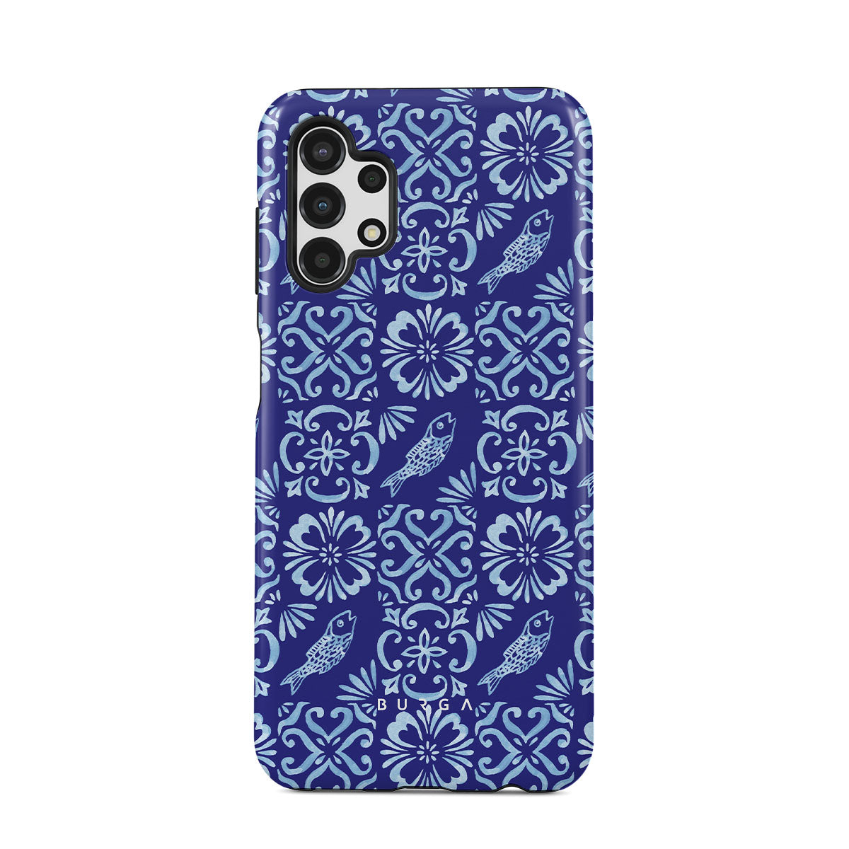 Cechy projektu: wzory portugalskich płytek, głębokie niebieskie, wzory kwiatowe, kwiaty, ryby