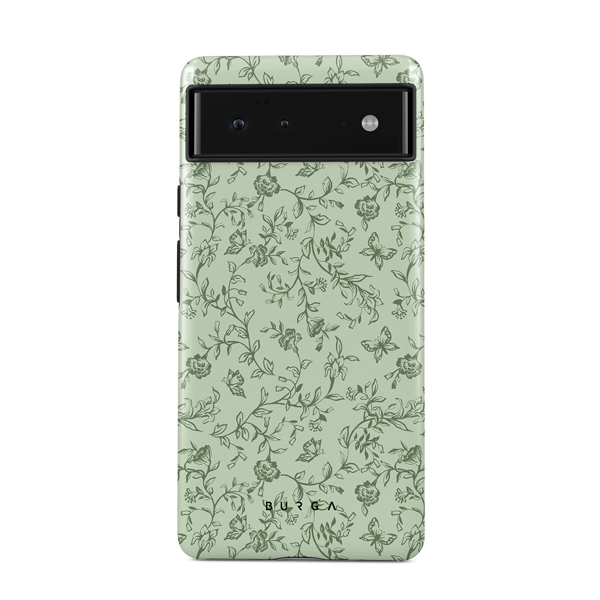 Główne elementy projektu: zielony wzór kwiatowy, kwiaty, motyle