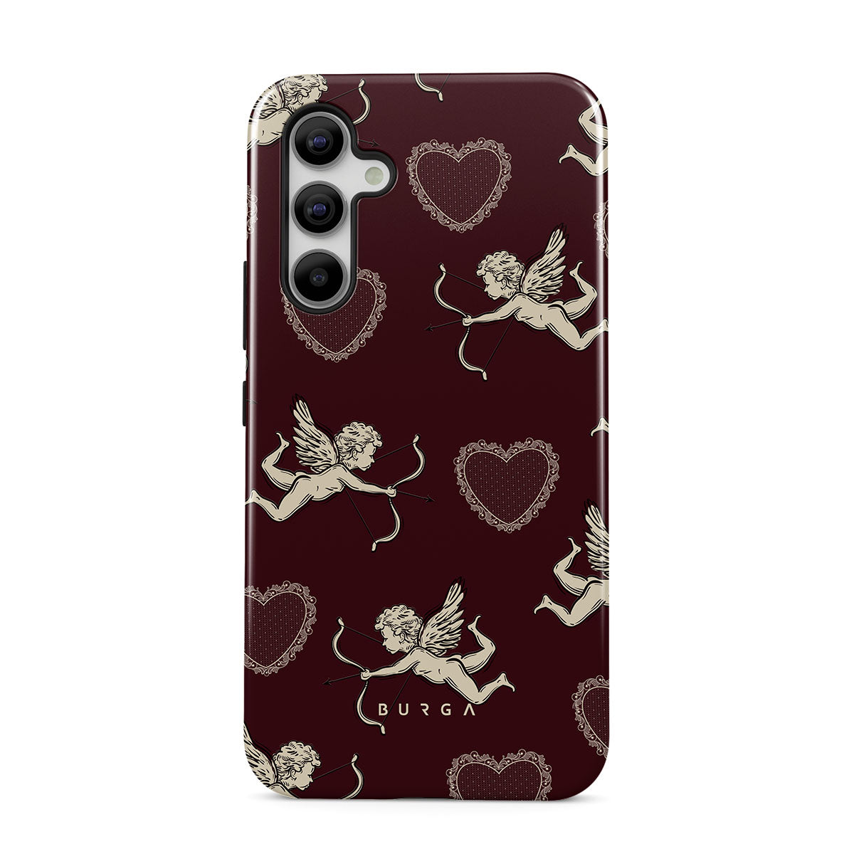 Główne elementy projektu: anioły, Kupidyn, czerwone serca, romantyczny wzór.