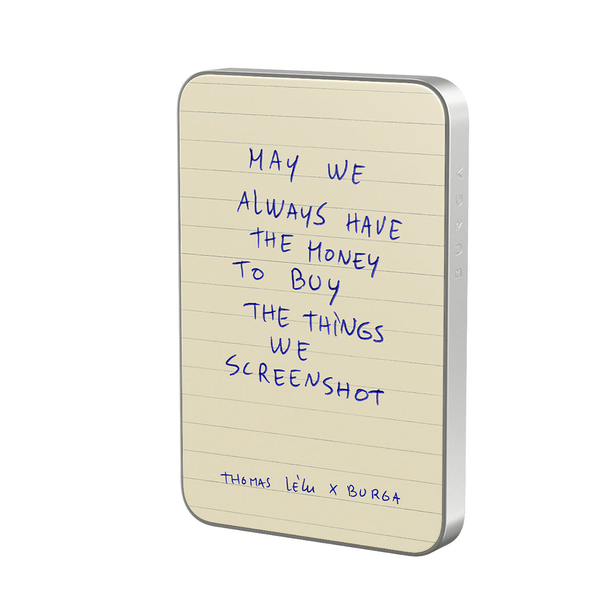 Niewielki, ale potężny. Stylowy, ale praktyczny. Przedstawiamy nowy i udoskonalony magnetyczny power bank od BURGA – jest tak mały, że mieści się w kieszeni, a mimo to ma pojemność 5,000 / 10,000 / 15,000 mAh. To idealne połączenie eleganckiego designu i charakterystycznego stylu BURGA. Ładuj i przyciągaj spojrzenia gdziekolwiek jesteś.