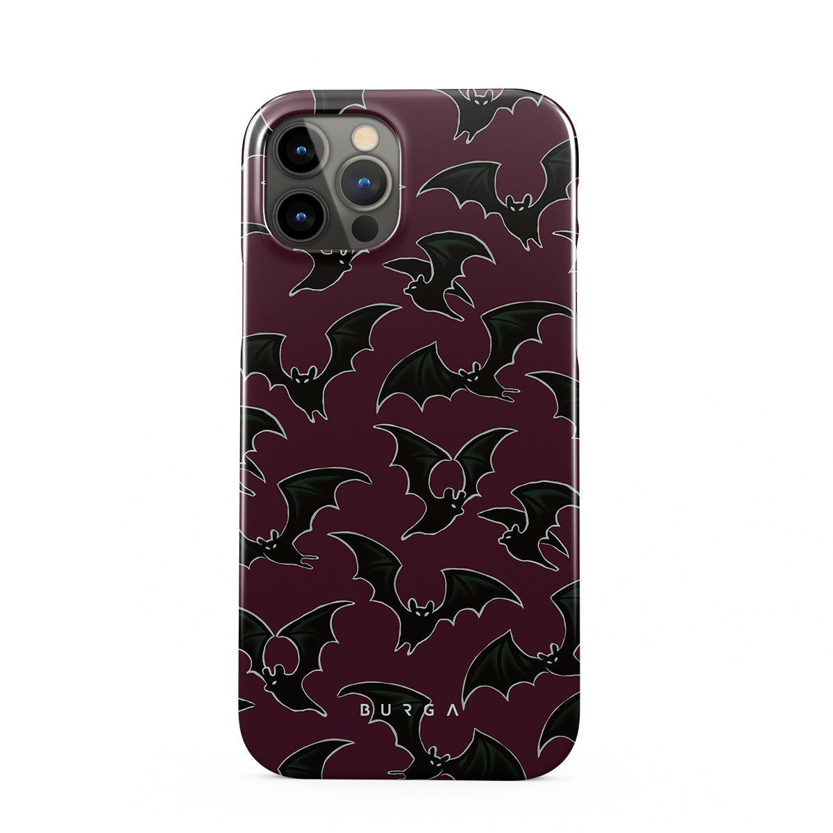 Główne elementy projektu: motyw Halloween, nietoperze, bordowe tło
