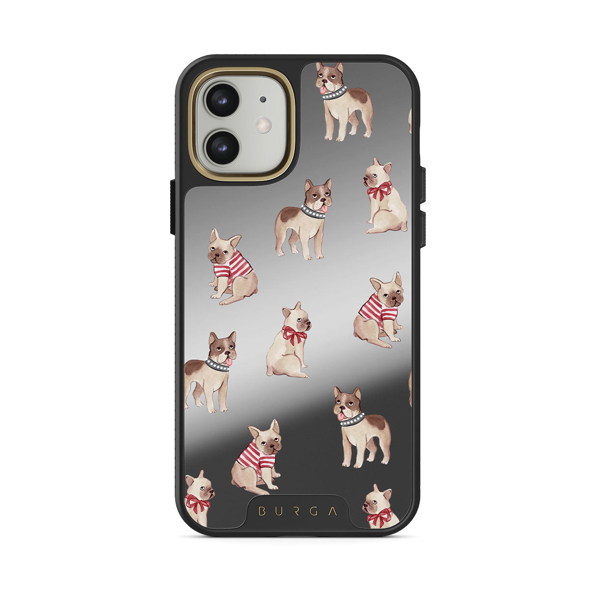 Główne elementy projektu: buldogi francuskie, psy, urocze zwierzęta, lustro