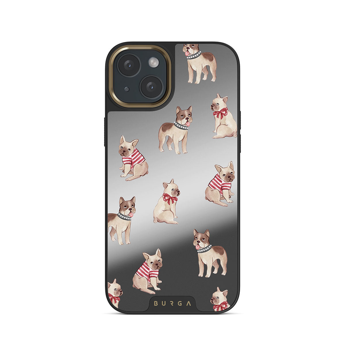 Główne elementy projektu: buldogi francuskie, psy, urocze zwierzęta, lustro