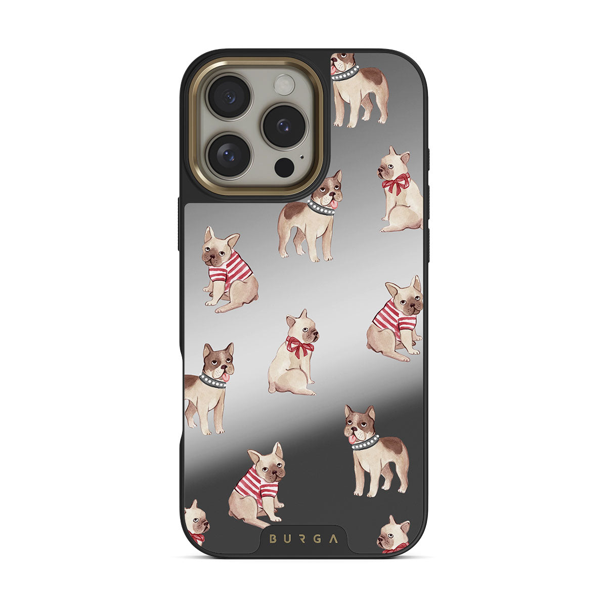 Główne elementy projektu: buldogi francuskie, psy, urocze zwierzęta, lustro