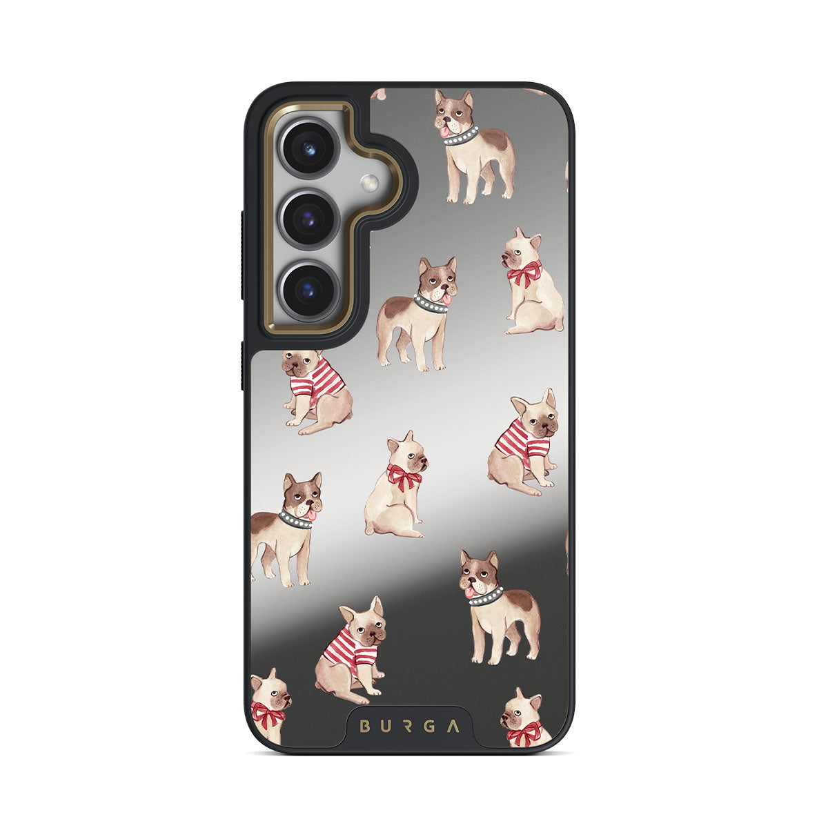 Główne elementy projektu: buldogi francuskie, psy, urocze zwierzęta, lustro