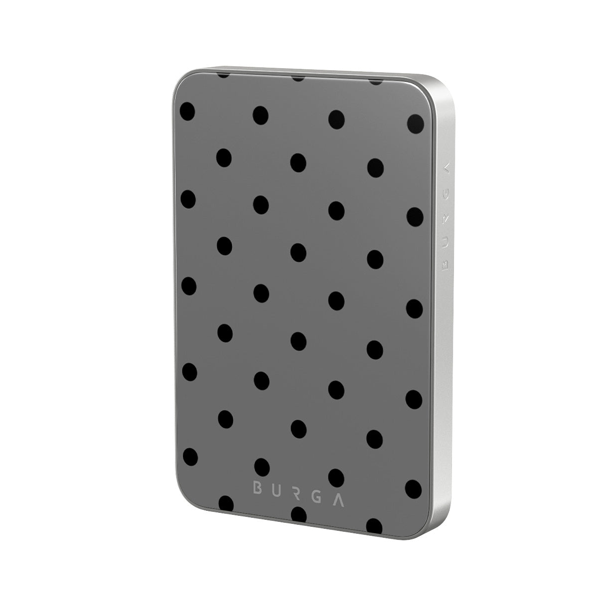 Niewielki, ale potężny. Stylowy, ale praktyczny. Przedstawiamy nowy i udoskonalony magnetyczny power bank od BURGA – jest tak mały, że mieści się w kieszeni, a mimo to ma pojemność 5,000 / 10,000 / 15,000 mAh. To idealne połączenie eleganckiego designu i charakterystycznego stylu BURGA. Ładuj i przyciągaj spojrzenia gdziekolwiek jesteś.