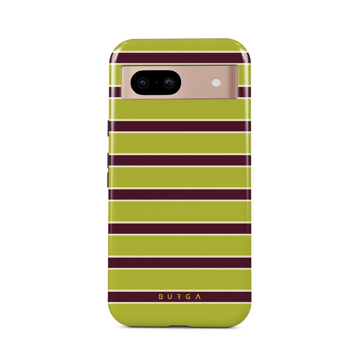 Główne elementy projektu: grube poziome paski w limonkowej zieleni i bordo.