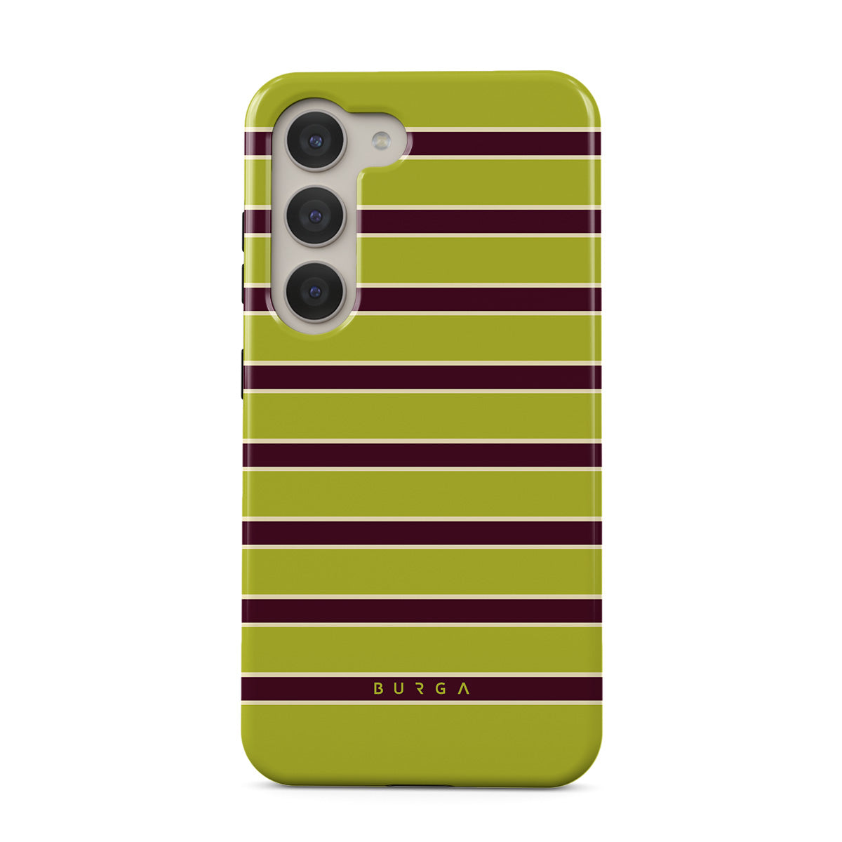 Główne elementy projektu: grube poziome paski w limonkowej zieleni i bordo.