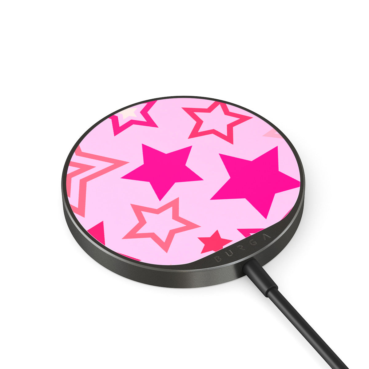 Zintegrowany przewód o długości 1,5 m ułatwia ładowanie urządzenia w dowolnym miejscu – w biurze, na kanapie lub w poczekalni na lotnisku. Ponadto szklana tylna część BURGA z ponad 500 wzorami do wyboru sprawia, że Twoja ładowarka wygląda równie dobrze jak etui.