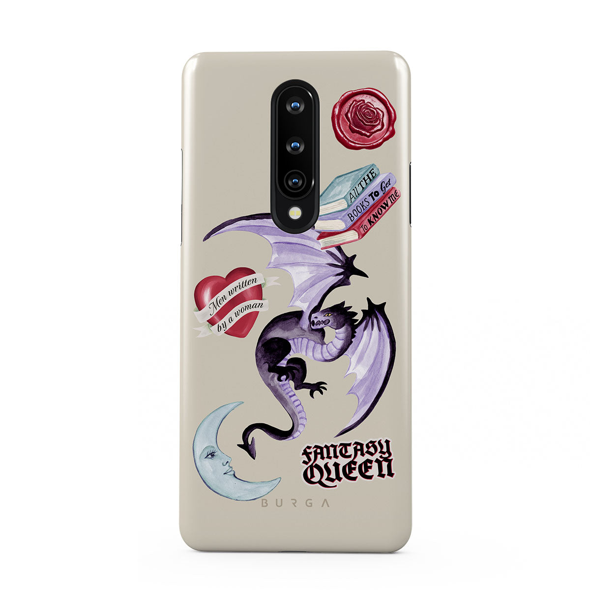 Główne elementy projektu: fioletowego smoka, naklejkę „Fantasy Queen”, półksiężyc, fioletową pieczęć woskową, serce z wiadomością, książki.