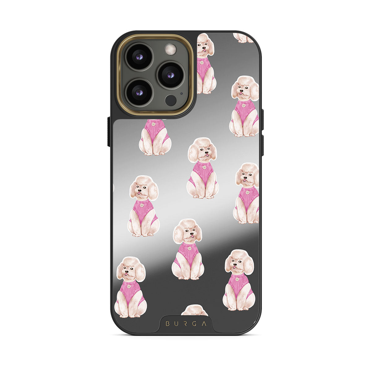 Główne elementy projektu: pudle, psy, zwierzęta domowe, różowe detale, lustro