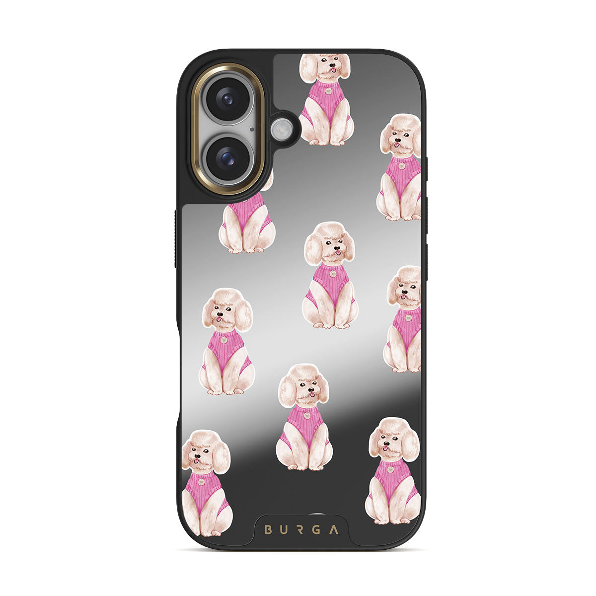 Główne elementy projektu: pudle, psy, zwierzęta domowe, różowe detale, lustro