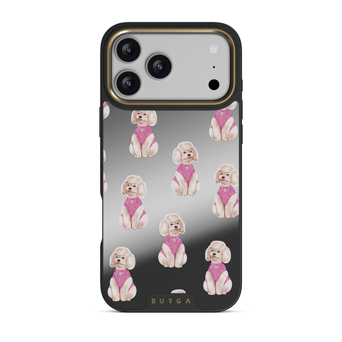 Główne elementy projektu: pudle, psy, zwierzęta domowe, różowe detale, lustro
