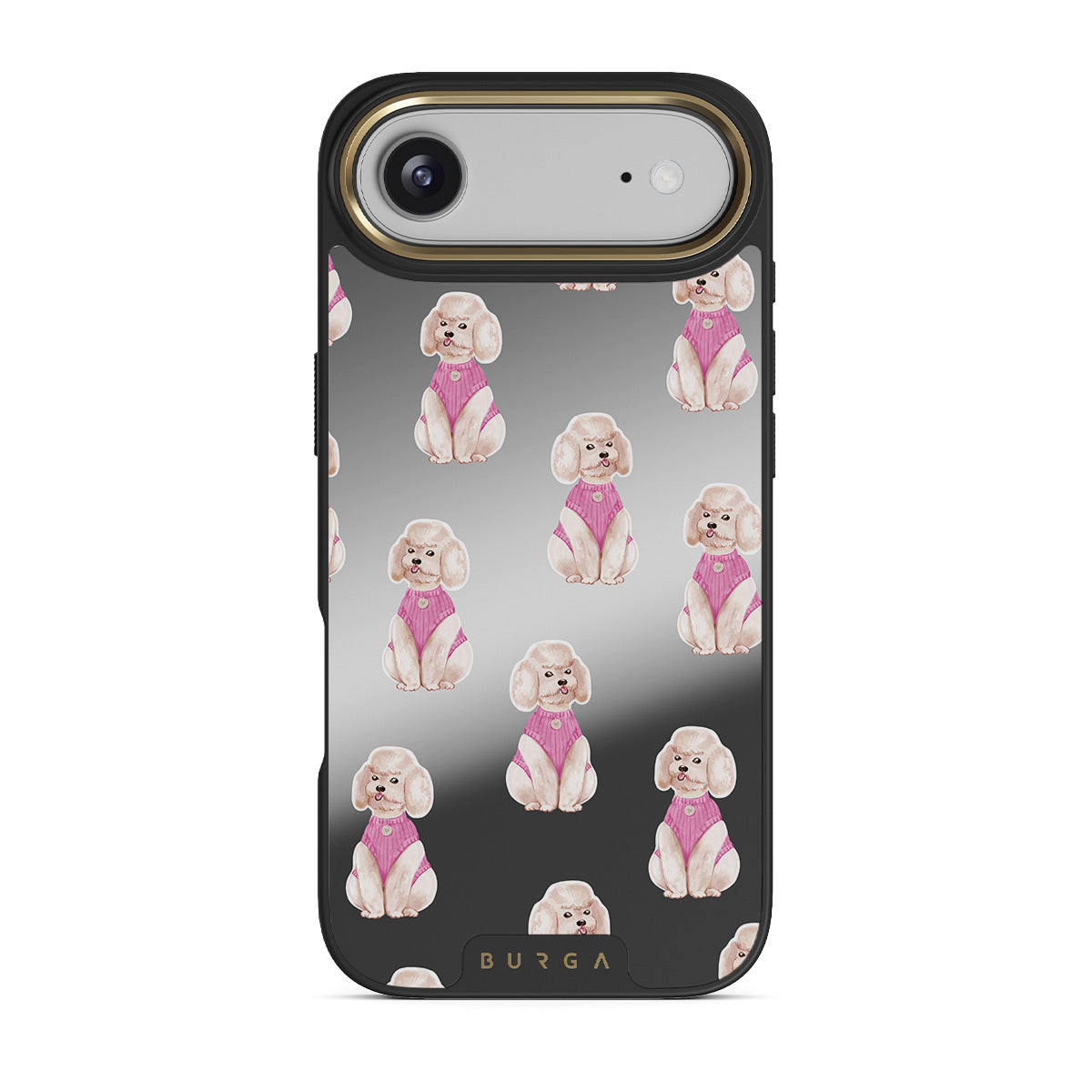 Główne elementy projektu: pudle, psy, zwierzęta domowe, różowe detale, lustro