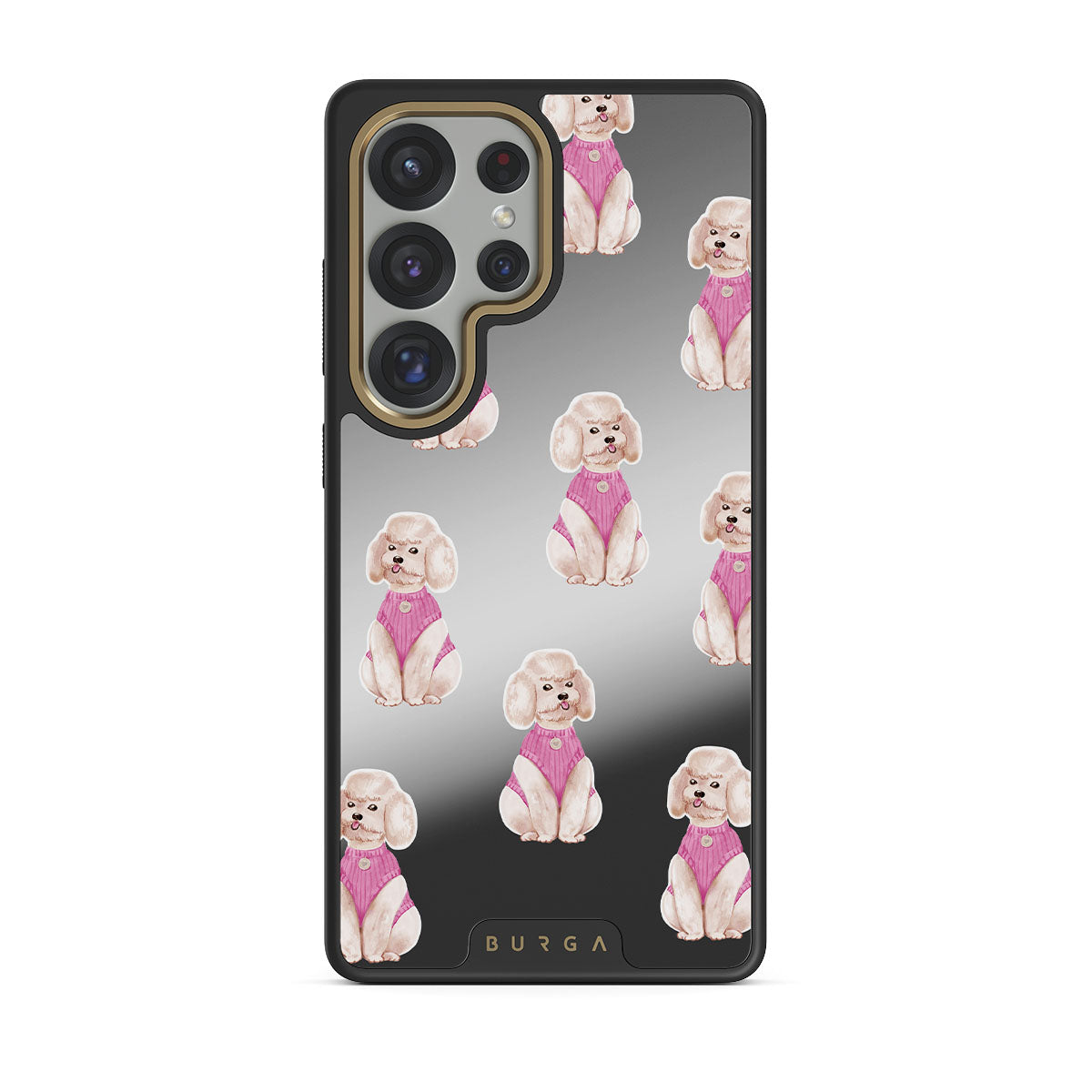 Główne elementy projektu: pudle, psy, zwierzęta domowe, różowe detale, lustro