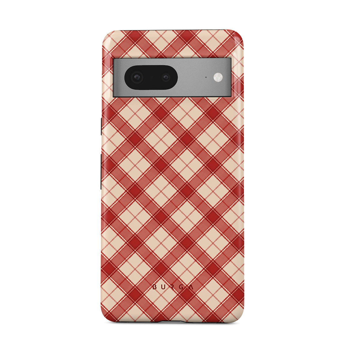 Główne elementy projektu: czerwona i brązowa kratka, ukośny wzór kratki, klasyczny tartan, styl buffalo check, tradycyjna świąteczna kratka