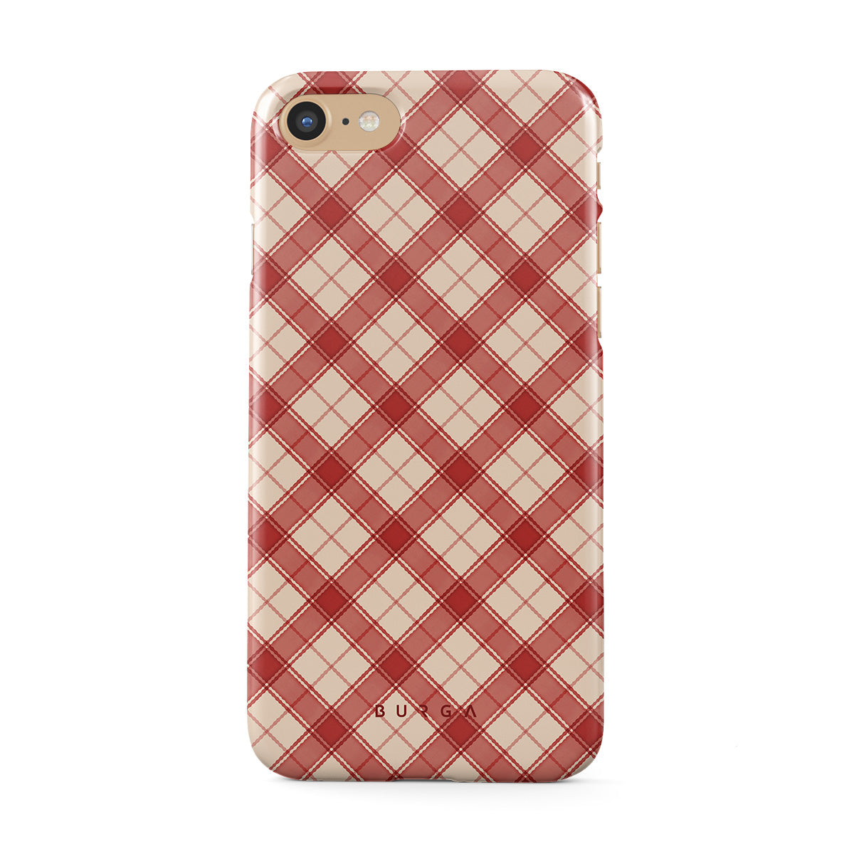 Główne elementy projektu: czerwona i brązowa kratka, ukośny wzór kratki, klasyczny tartan, styl buffalo check, tradycyjna świąteczna kratka