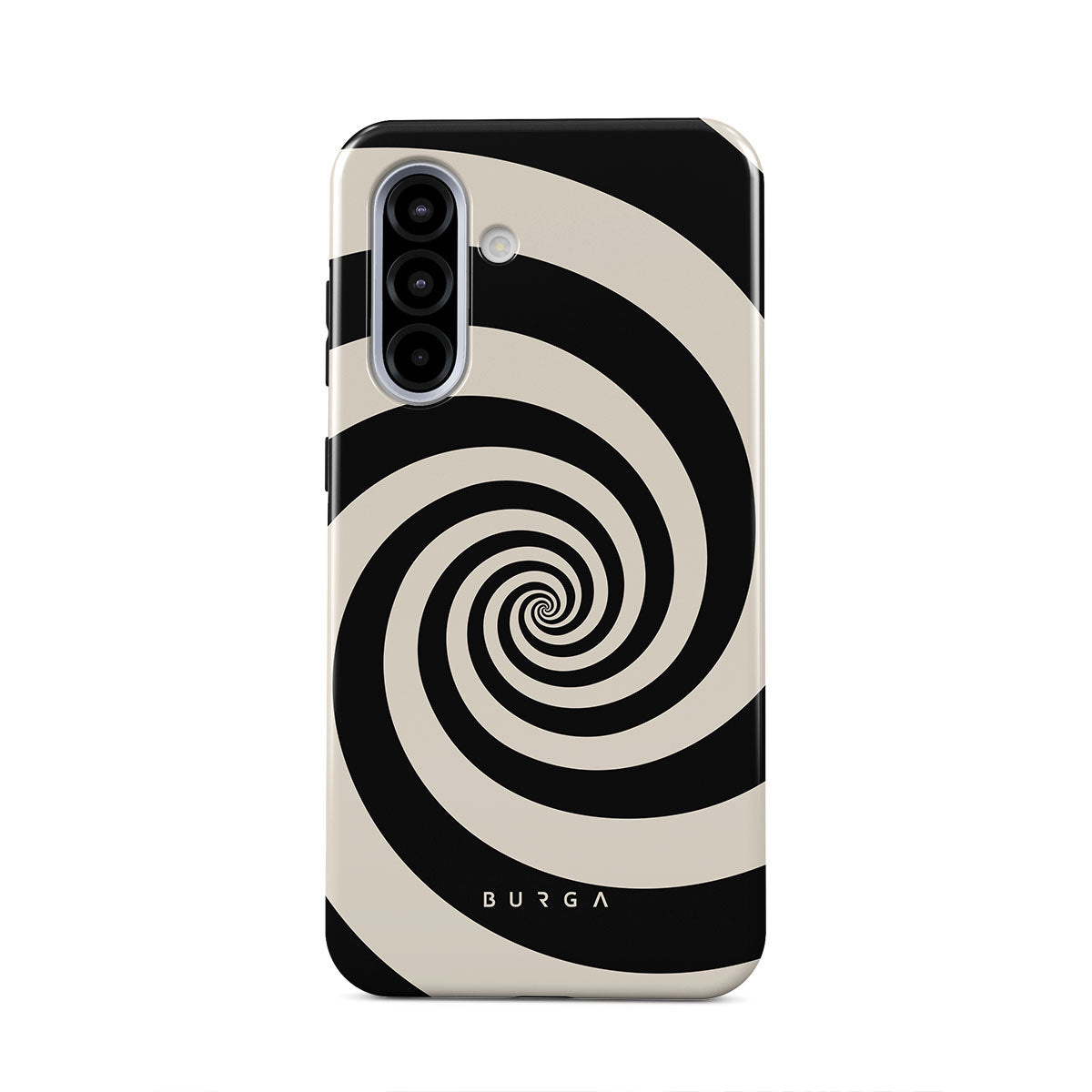 Główne elementy projektu: czarno-białą spiralę, hipnotyczny wzór