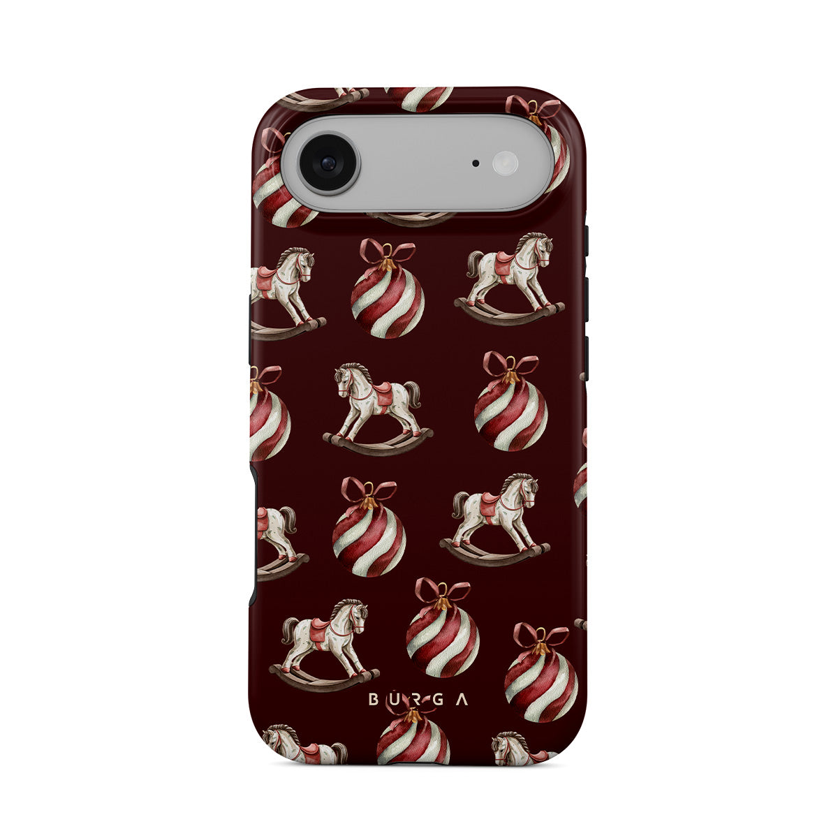 Główne elementy projektu: konie na biegunach, bombki, kolor czerwony, świąteczny wzór