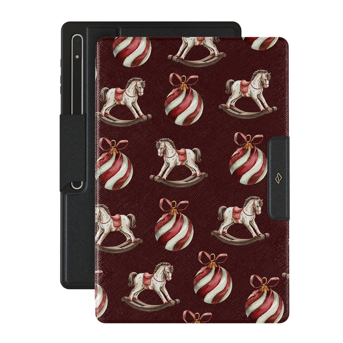 Uwaga: Wzór jest nadrukowany – nie ma faktury ani tłoczenia.Główne elementy projektu: konie na biegunach, bombki, kolor czerwony, świąteczny wzór