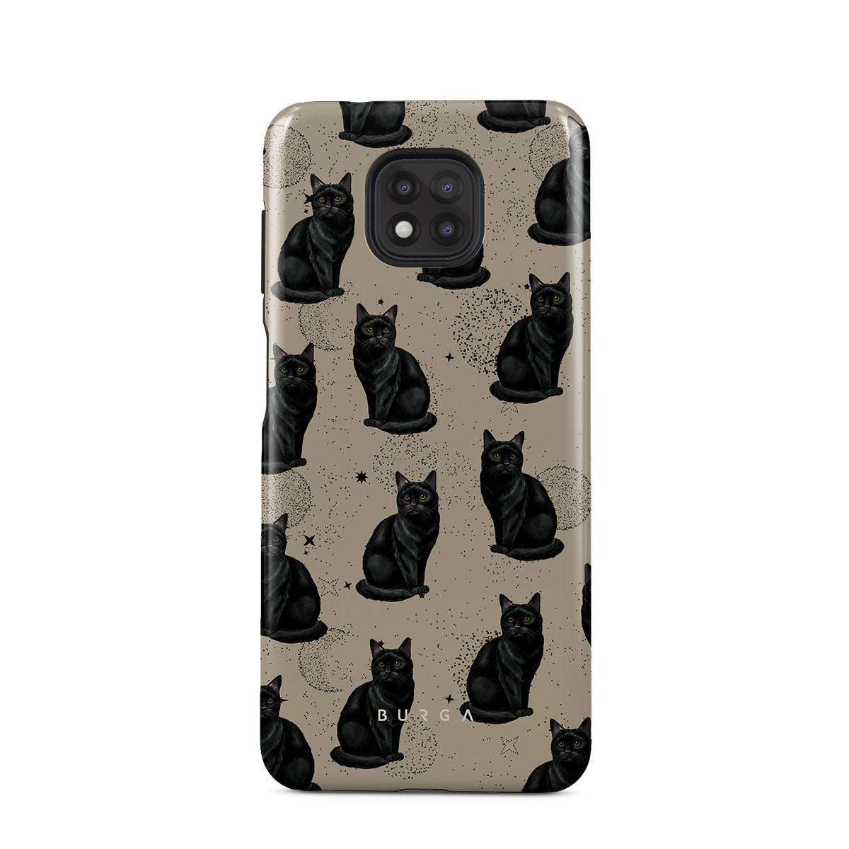 Główne elementy projektu: czarne koty, mistyczne symbole.