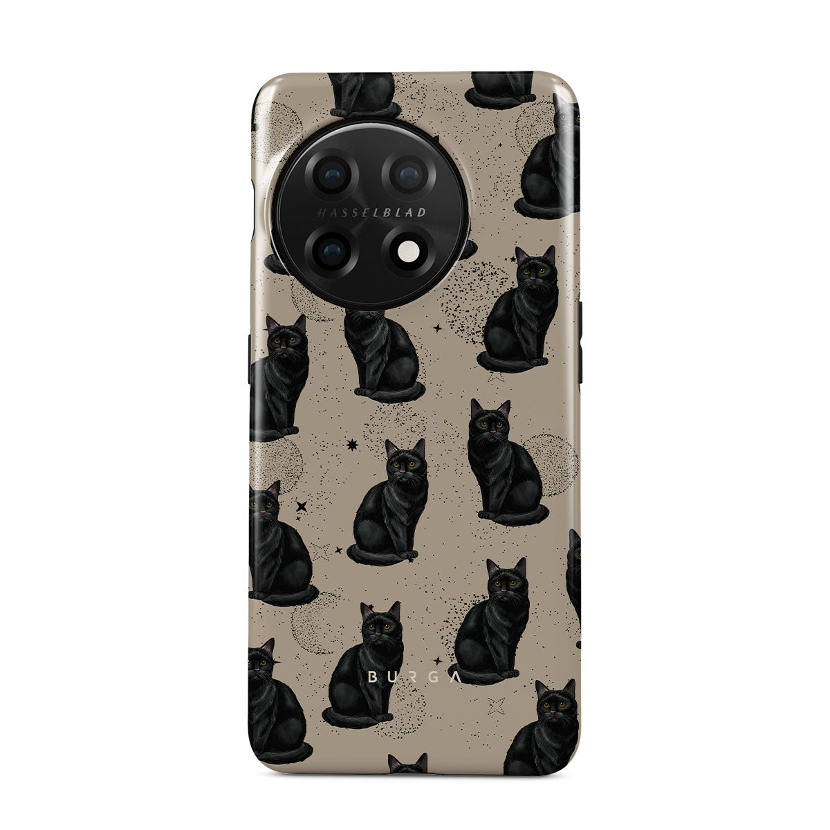 Główne elementy projektu: czarne koty, mistyczne symbole.