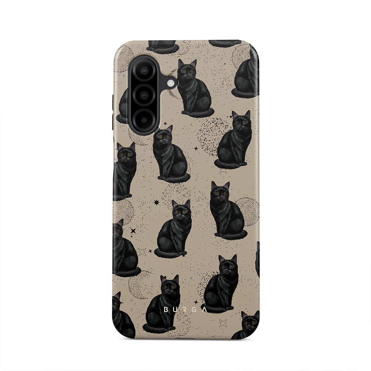 Główne elementy projektu: czarne koty, mistyczne symbole.