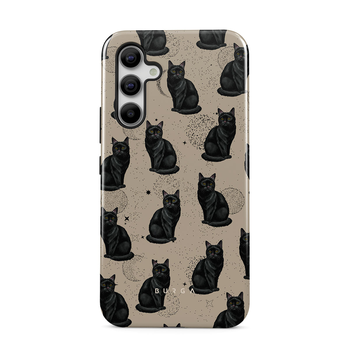 Główne elementy projektu: czarne koty, mistyczne symbole.