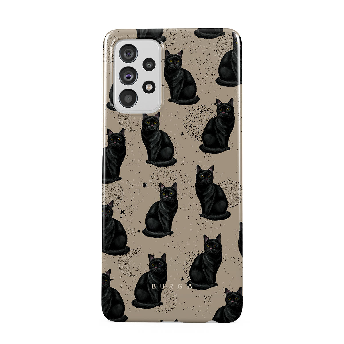 Główne elementy projektu: czarne koty, mistyczne symbole.