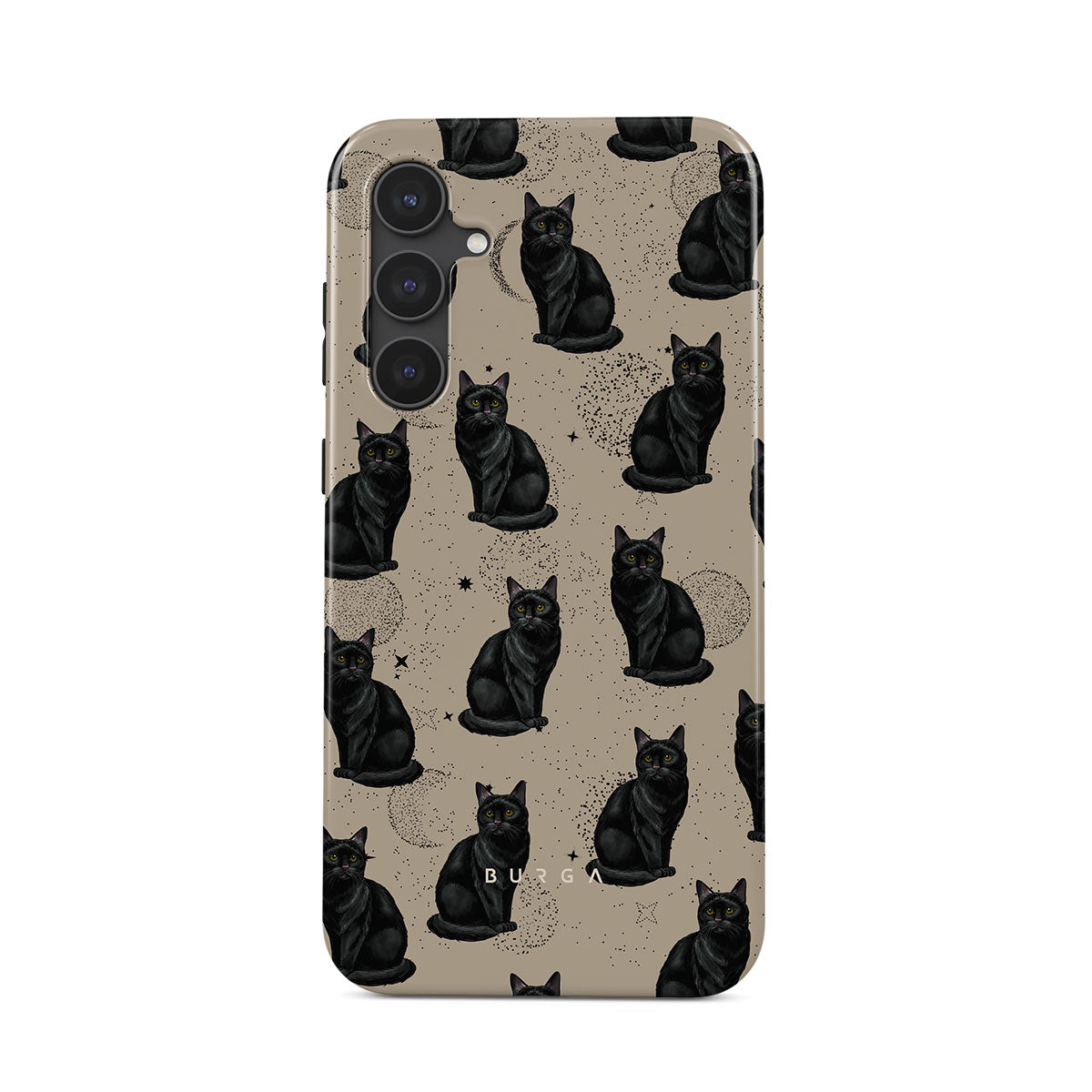 Główne elementy projektu: czarne koty, mistyczne symbole.