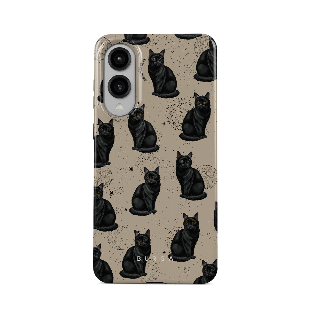 Główne elementy projektu: czarne koty, mistyczne symbole.