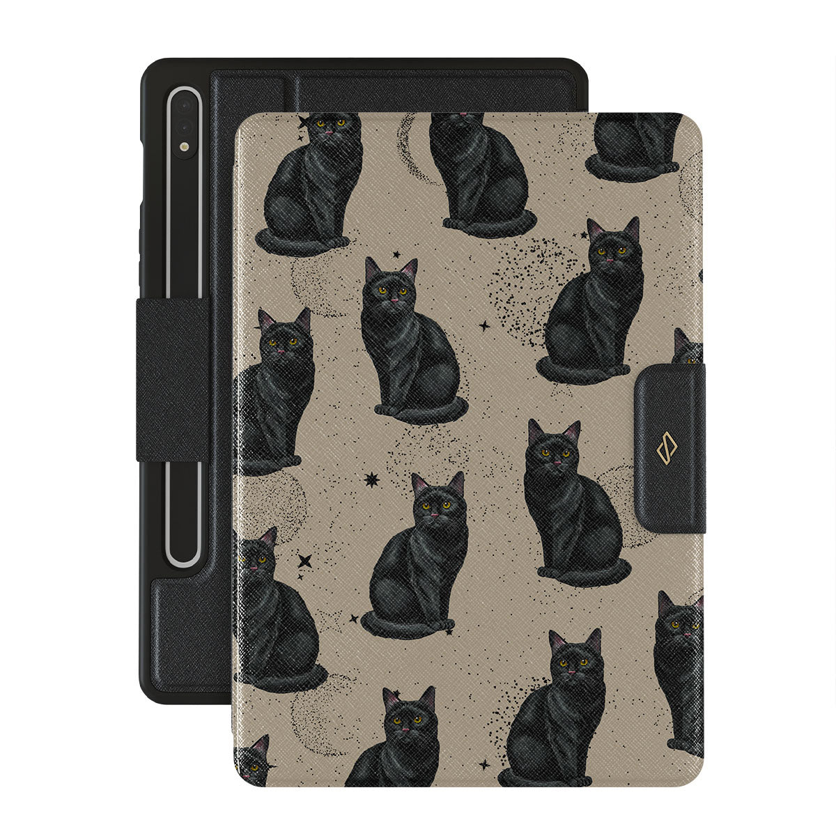Główne elementy projektu: czarne koty, mistyczne symbole.
