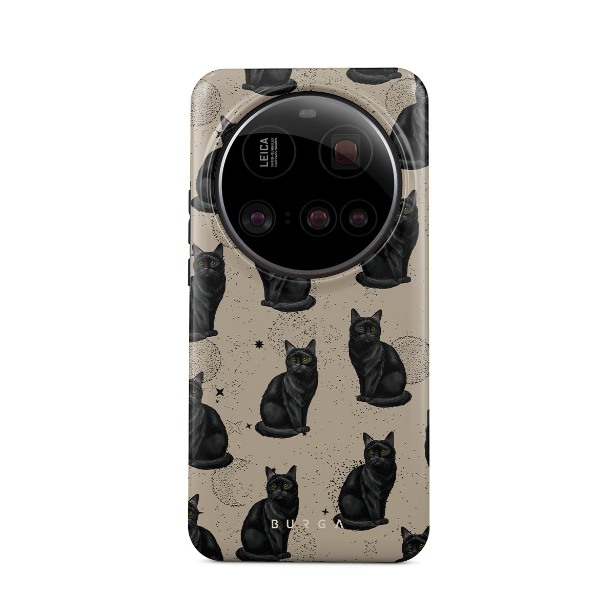 Główne elementy projektu: czarne koty, mistyczne symbole.
