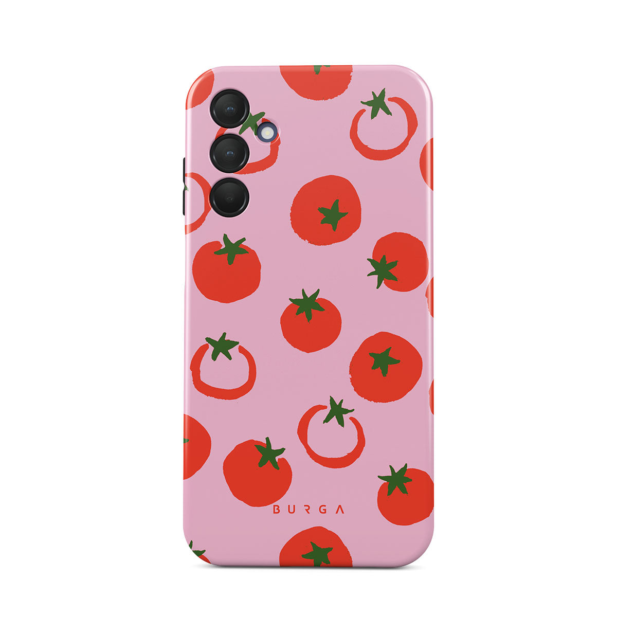 Główne elementy projektu: Pomidory, odważne czerwone i różowe kolory.