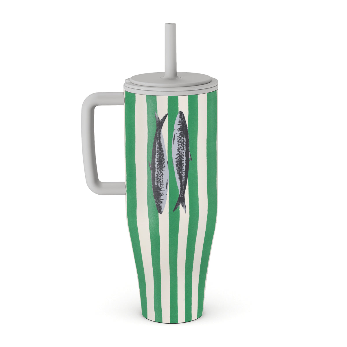 Główne elementy projektu: Sardynki, zielone paski, motywy oceaniczne.