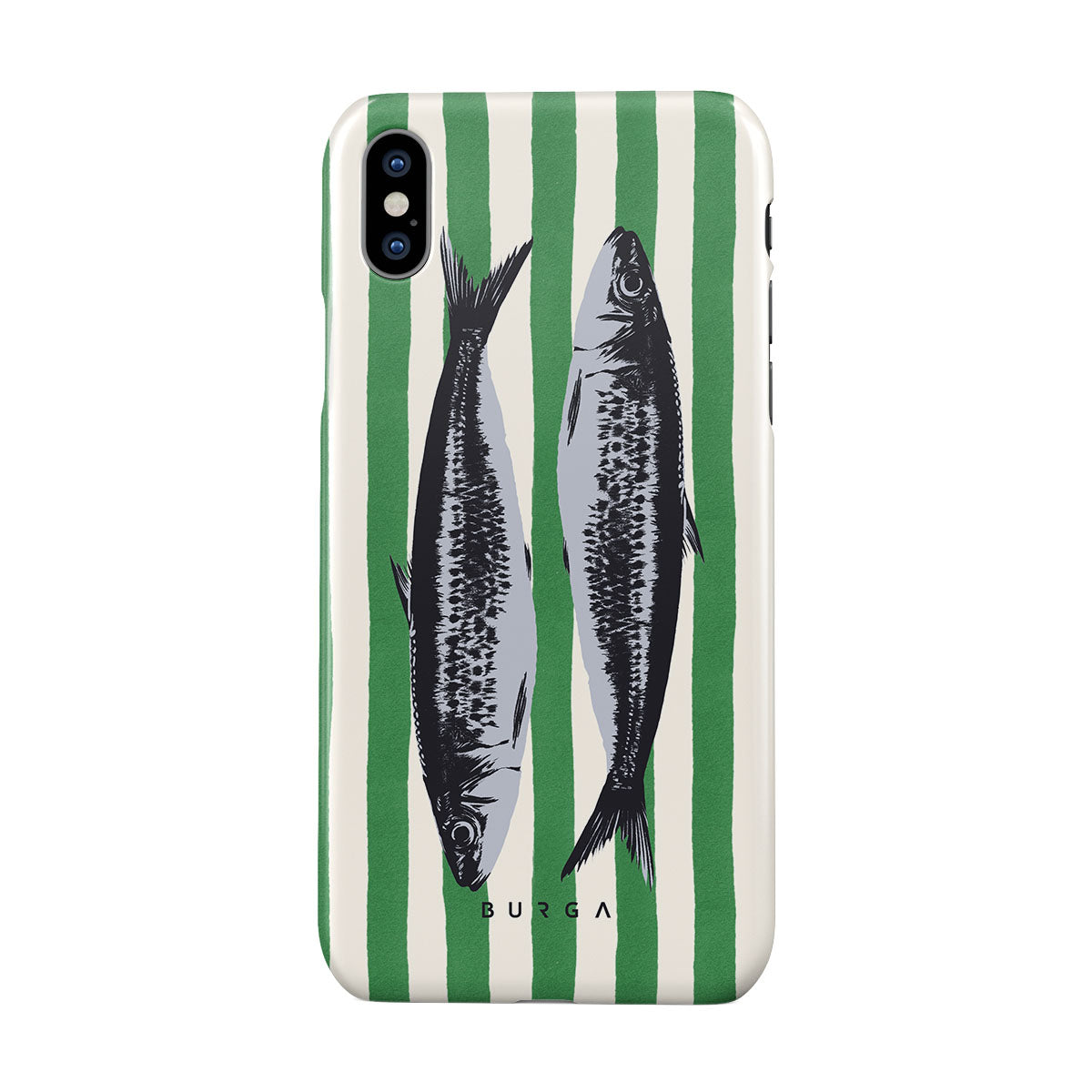 Główne elementy projektu: Sardynki, zielone paski, motywy oceaniczne.