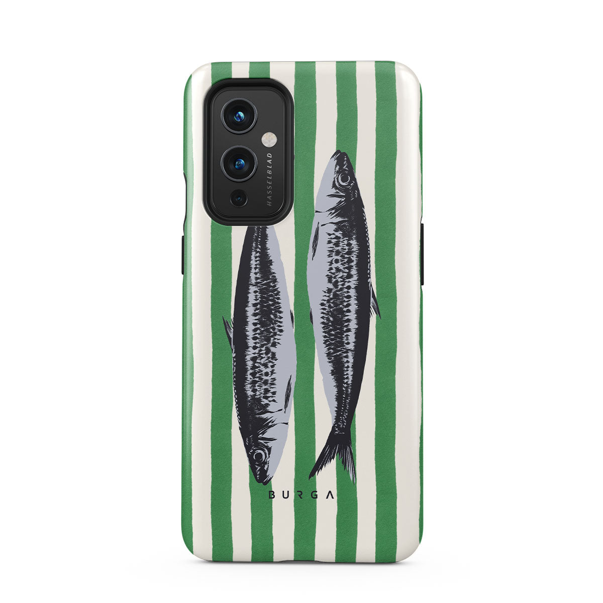Główne elementy projektu: Sardynki, zielone paski, motywy oceaniczne.